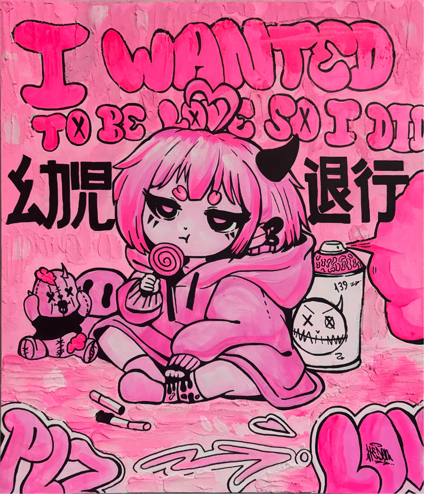 Q. 작업을 시작하게 된 계기나 출발점이 된 순간이 있다면 무엇이었나요? : 미술학원을 그만두고 그림을 그만 그려야겠다라고 생각한 순간 어떤 힙합 뮤비에 래퍼 뒤에 보이는 그래피티를 보고 그림을 다시금 잡기 시작했습니다. 그때를 기점으로 그림 스타일부터 하나하나 다시 쌓는다란 느낌으로 새롭게 임하기 시작했습니다.
