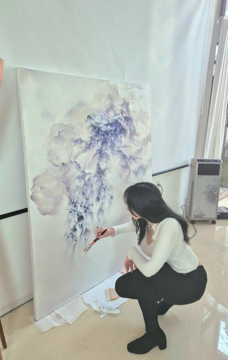 화면 위의 붓 터치는 감정의 흐름이자 살아있는 호흡이며, 색채의 움직임과 여백에서