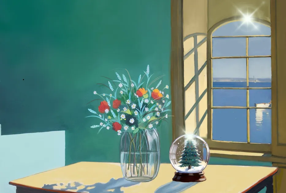 공존하는 계절 : 창가에 놓인 화사한 들꽃과 고요한 스노우볼은 흐르는 시간 속 봄·여름의 생기와 가을·겨울의 기다림을 한자리에 불러모읍니다.