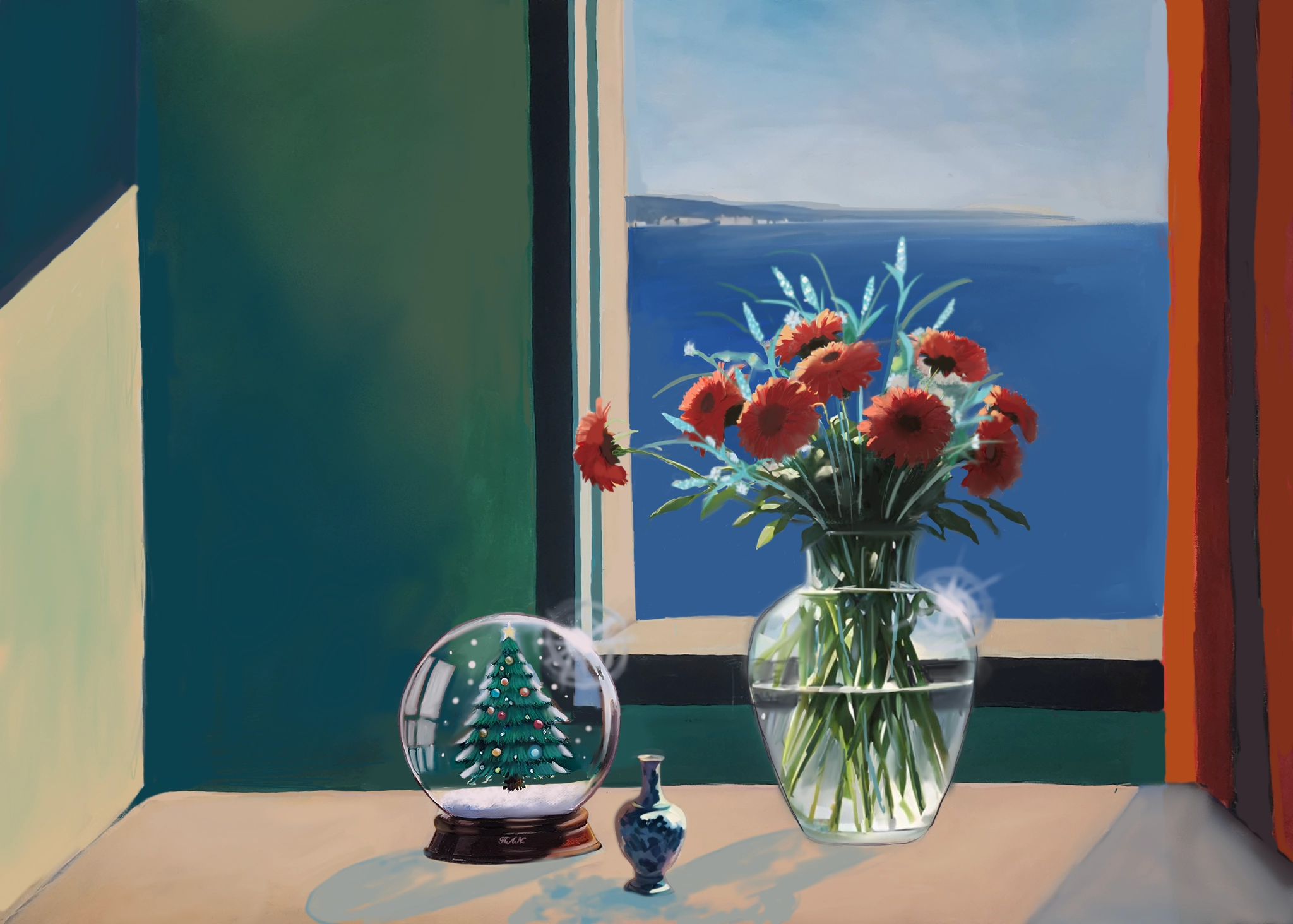 찰나와 영원의 조우 "창밖의 바다는 영원을 말하고, 내 곁의 꽃은 가장 뜨거운 지금을 피워냅니다."