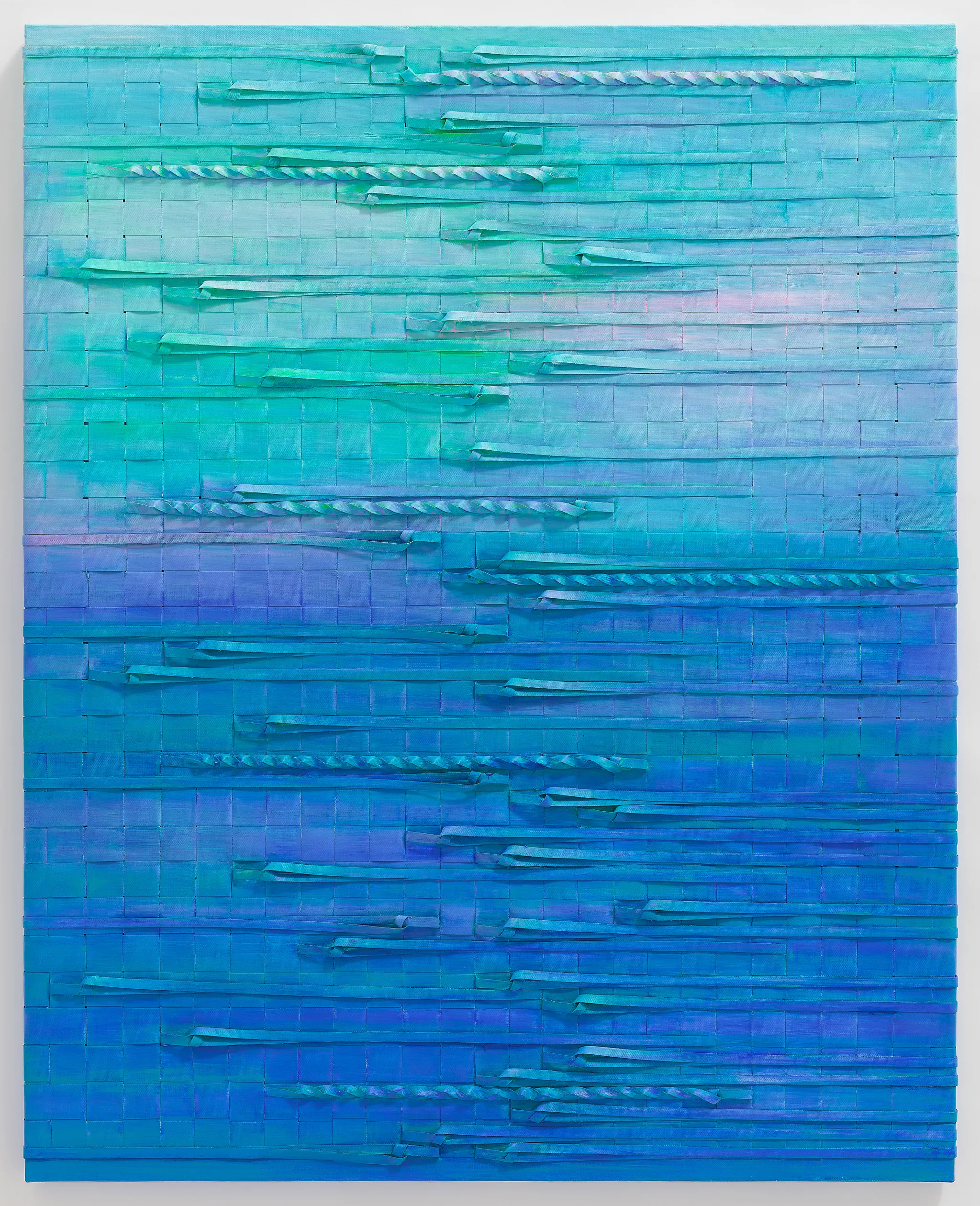 직조된 색의 구조와 그 위에 쌓인 색의 층은 바다의 빛과 움직임을 연상시키며 화면 안에서 조형적인 리듬을 만들어낸다.