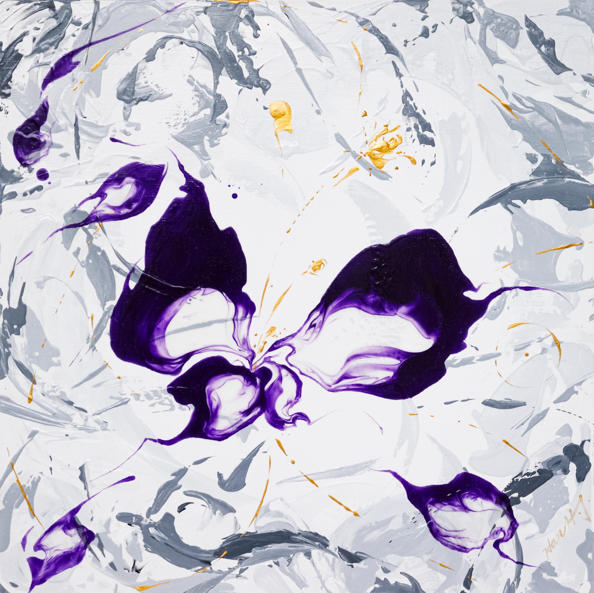 적막이 흐르는 우주에서 요란한 빛을 발현 시키며 생성되는 꽃으로 보았고, 그 꽃은 특정한 꽃이 아닌 형이상학적 이미지이다. 정신의 대상이 되는 추상적 실재로서 형상의 존재와 성격을 해명하고자 꽃으로 나타냈다. 모든 탄생은 우주의 시간 속에 공존하는 다른 시간에서 느리게 유동하는 부유물이며 물감이 우연히 만들어내는 꽃의 형상은 똑같이 표현해 낼 수 없는 유일무이한 존재이다.
